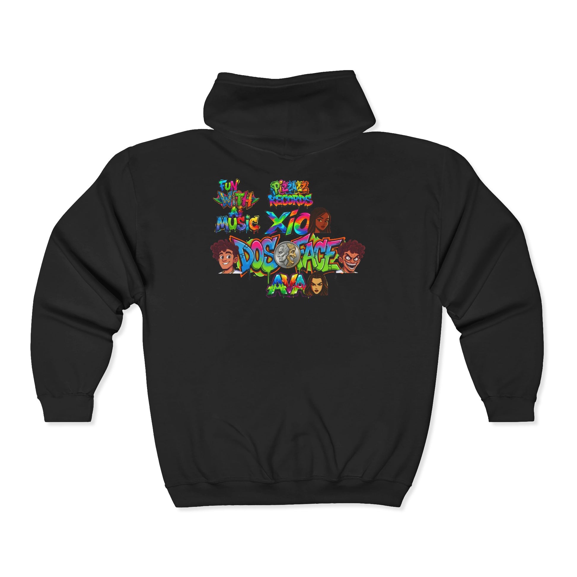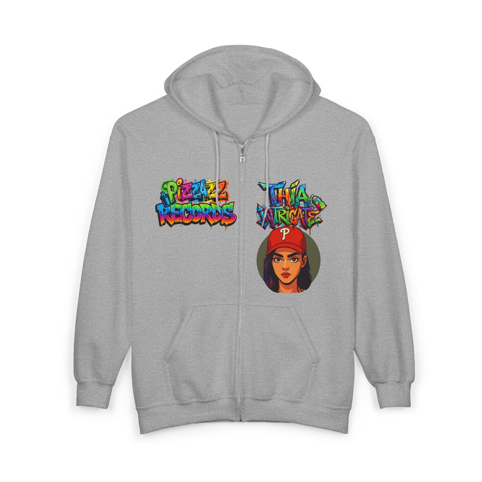 Cozy Pizzazz Records cast Thia Zip Hoodie — Festive Music Label Graphic Sweatshirt